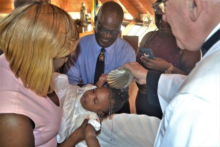 Nyla Addly-Miller was baptised by Deacon Michael.